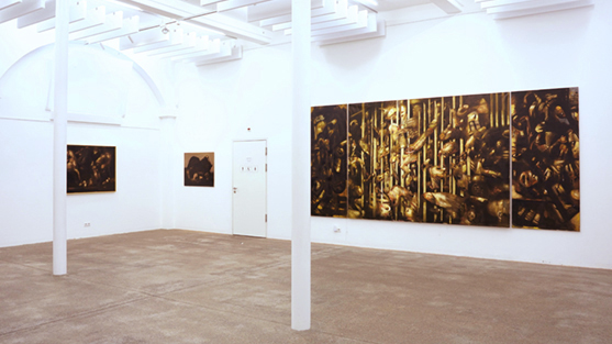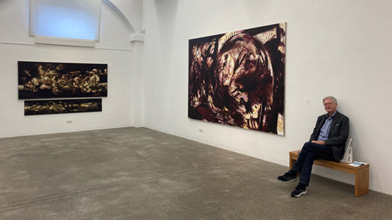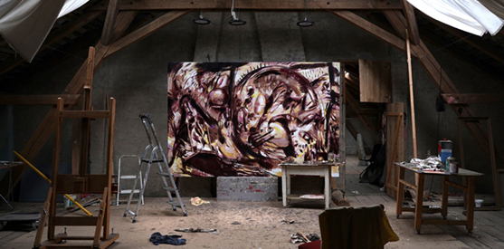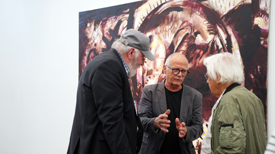 Dabei legt er Wert darauf, das Strömungsverhalten der Farbe nicht durch unzeitige Emphasen zu zerreißen, aber trotzdem die Möglichkeit einer kompositorischen Akzentuierung in der Hinterhand zu behalten.