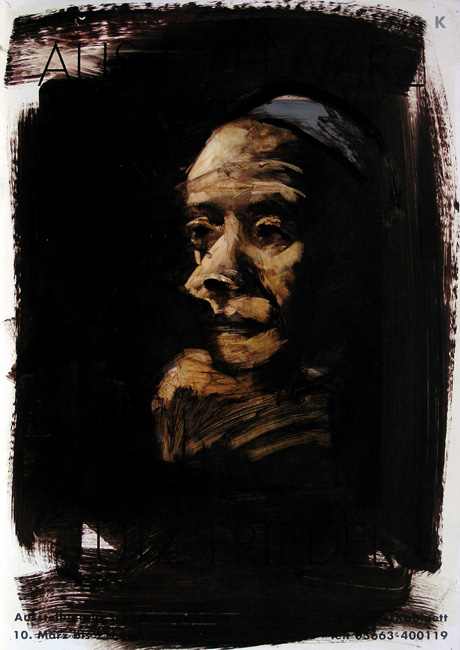 Selbst als alter Voltaire Selbstportraets aus den Jahren 1635 - 2008 Übermalung von Ausstellungsplakaten, Öl · 59,4 x 42 cm