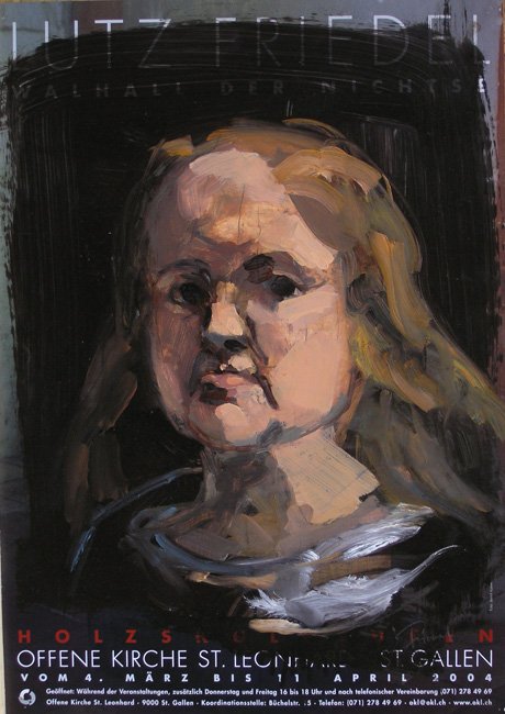 Selbst als Zwergin, nach Velasquez Selbstportraets aus den Jahren 1635 - 2008 Übermalung von Ausstellungsplakaten, Öl · 59,4 x 42 cm