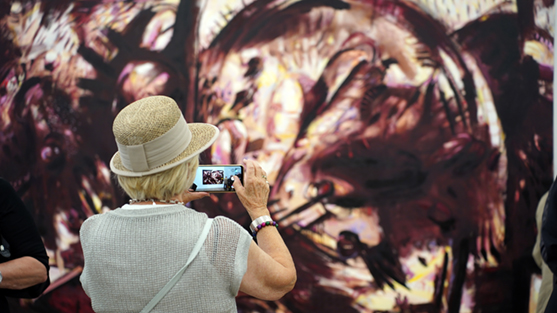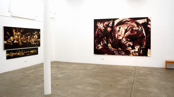 Dabei legt er Wert darauf, das Strömungsverhalten der Farbe nicht durch unzeitige Emphasen zu zerreißen, aber trotzdem die Möglichkeit einer kompositorischen Akzentuierung in der Hinterhand zu behalten.
